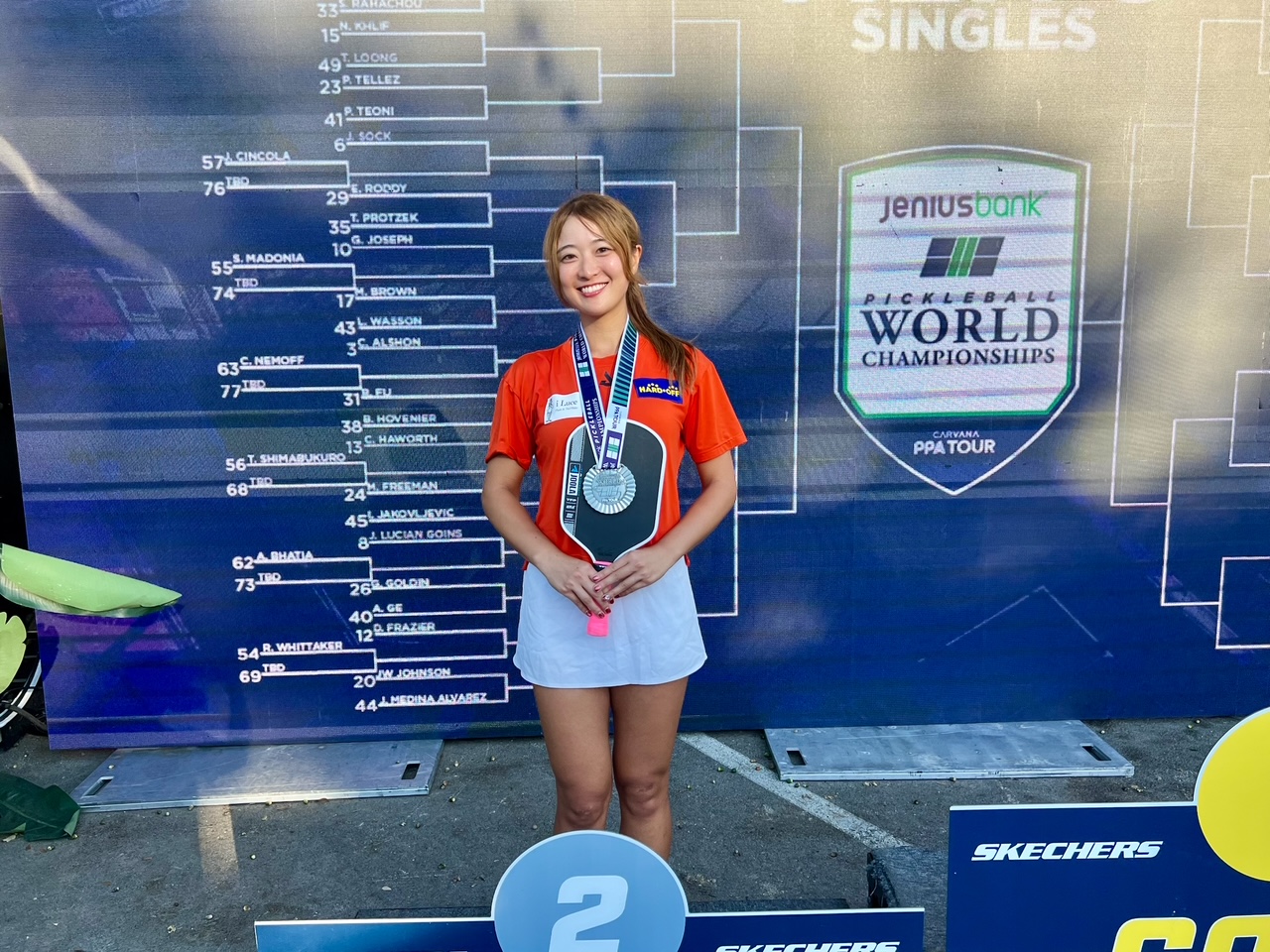 小学3年生から硬式テニスを始め、高校、大学はスポーツ推薦入学で進学、大学4年生まで体育会テニス部で選手活動。大学卒業後は大手オフィス家具メーカー(株)オカムラに入社。趣味で続けていたテニスの友人に、ピックルボールの体験会に誘われたこがきっかけで ピックルボールのあまりの楽しさと、このスポーツの将来性を感じ、ピックルボール沼にハマる。初出場した国内の公式大会で、mixダブルス優勝、女子ダブルスベスト4。それ以降の国内公式大会ではすべて準優勝以上、日本初の有明で行われた国際大会では金メダルを獲得。2024年10月、日本代表選手に選抜され(女性は2人のみ)、インドの国際大会にも出場。インドで開催された世界大会で実力の差を見せつけられ、悔しい想いをした経験から海外で活躍できる選手になるために2025月2月に会社を退職し、選手活動を本格的に始動。日本ピックルボール業界を盛り上げる活動に従事。